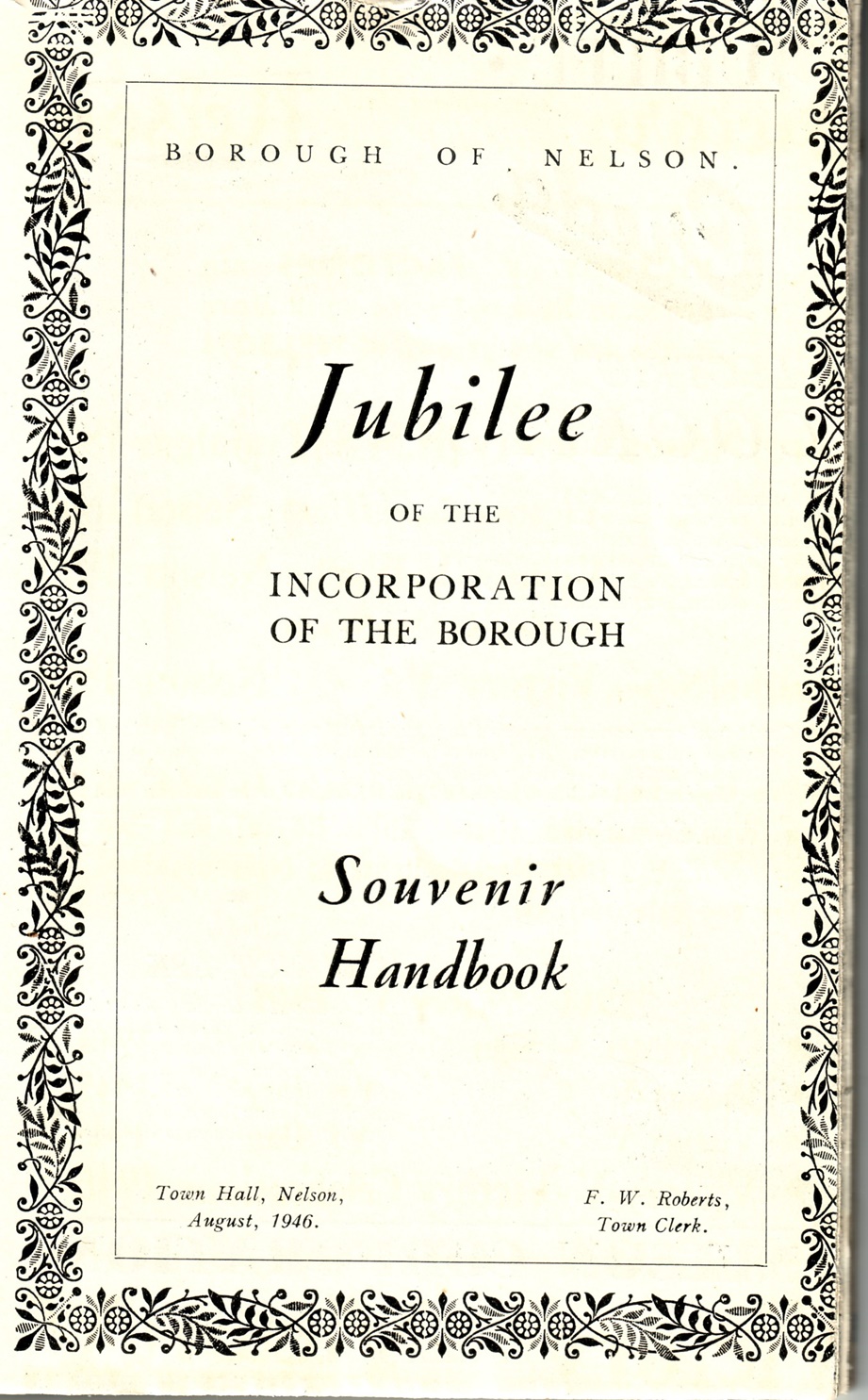 Envelope 6876 contains five cuttings and three of them give much historical information about Nelson from before its incorporation as a borough in 1890 to its achievements over adversity up to 1961. Envelope 6875 contains a copy of the Jubilee Celebrations Souvenir Handbook of 1946. The three articles are transcribed in full below together with an assortment of images from the souvenir handbook.
